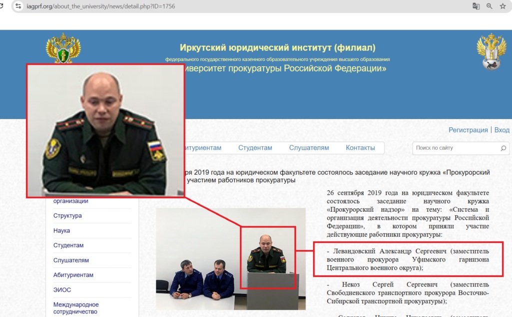 Також після окупації Криму Олександр Левандовський почав отримувати доходи у військовій прокуратурі Центрального військового округу РФ. 2019 року на сайті іркутської філії Університету прокуратури РФ з’явилася новина про засідання наукового гуртка «Прокурорський нагляд» за участю працівників російської прокуратури. Серед учасників – Левандовський Олександр Сергійович як заступник військового прокурора Уфимського гарнізону Центрального військового округу (Башкортостан, РФ).