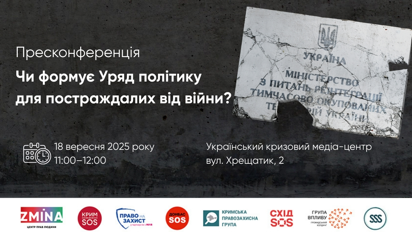 18 сентября в Украинском кризисном медиацентре (УКМЦ) проходит пресс-конференция на тему: «Формирует ли Правительство политику для пострадавших от войны?».