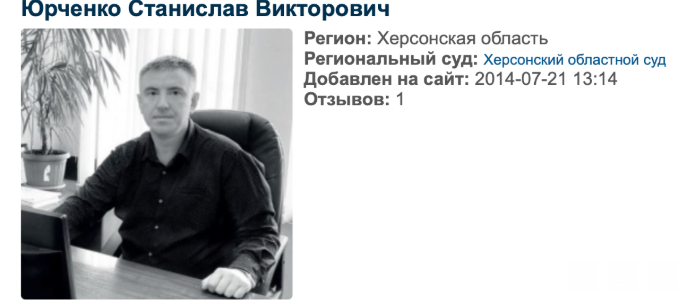 46-летний Станислав Юрченко из Ялты, ранее работавший оккупационным судьей Джанкойского горрайонного суда АР Крым, в 2024 году назначен Путиным судьей оккупационного «Херсонского областного суда». 4 ноября Херсонский городской суд заочно признал его виновным в коллаборационной деятельности. Ранее другой суд признал его виновным в государственной измене.