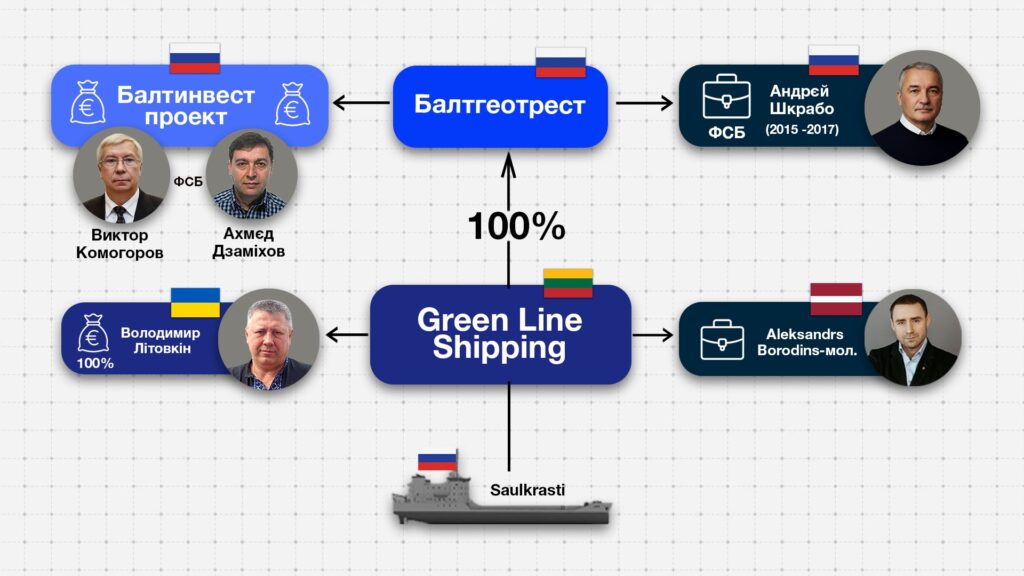 Например, Бородинс-младший является директором Green Line Shipping, зарегистрированной в Клайпеде, Литва, которая является владелицей российского ООО «Балтгеотраст», которое, в свою очередь, основало российскую компанию «Балтинвестпроект», где совладельцами были генерал Комогоров и его бизнес-партнер Дзамихов.