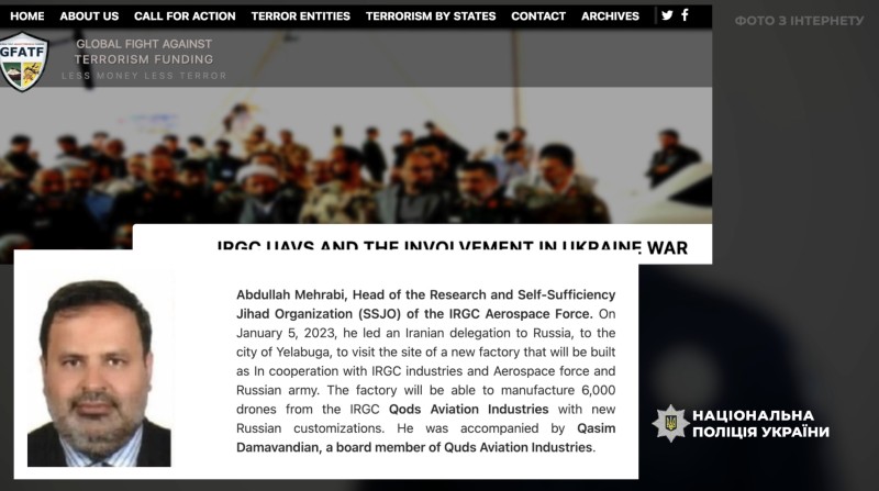 Нацполиция совместно с СБУ разоблачила схему поставки из Ирана в РФ ударных беспилотников и передачи технологий их производства, установлен ключевой координатор этого сотрудничества — бригадный генерал Корпуса стражей исламской революции Абдолла Мехраби. Ему заочно сообщено о подозрении. За дроны Россия рассчитывалась золотыми слитками. В июне 2023 года ЦЖР сообщал, что предприятие, действующее в свободной экономической зоне «Алабуга» в Республике Татарстан, будет производить «районированные» ударные дроны Shahed, собирая доставленные из Ирана детали.