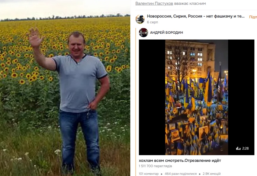 Валентин Пастухов, колаборант і скриншот одного з його перепостів у соцмережі