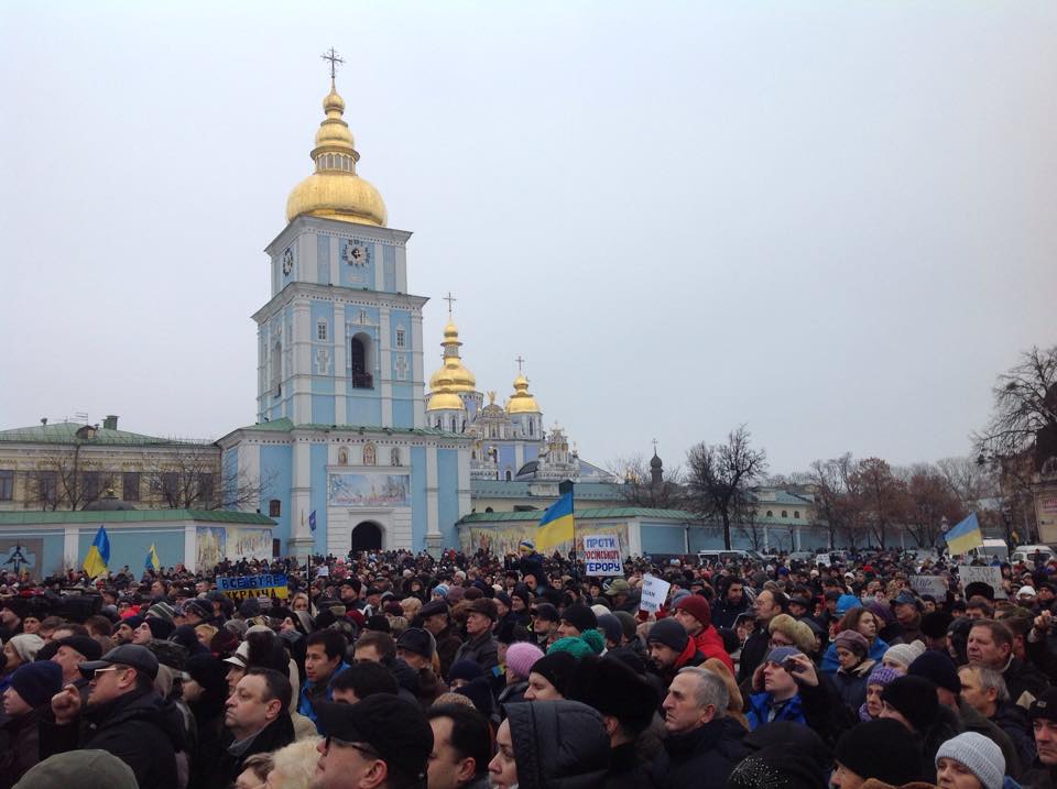 Многотясячный митинг в память о погибших под Волновахой также прошел на Михайловской площади в Киеве. Перед митингующими выступил мэр Киева Виталий Кличко. Также выступилb посол Франции в Украине Ален Реми и посол ЕС Ян Томбинский, сообщает РБК-Украина.
