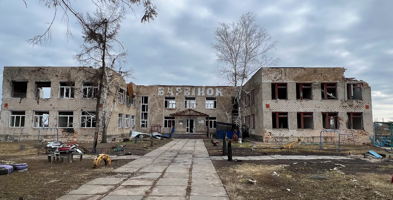 Розбитий російськими окупантами дитсадок у селі Осокорівка. Фото: Олег Батурін/ЦЖР