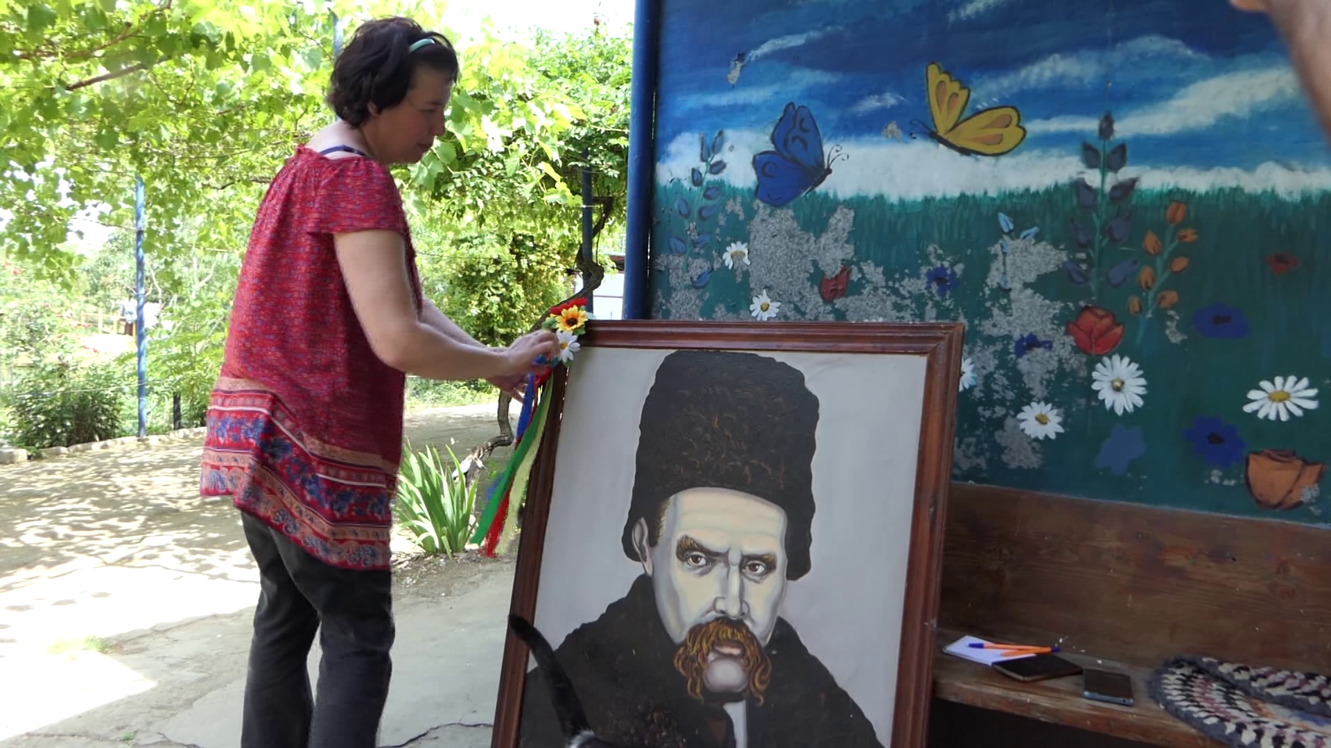 Інна Сезоненко поруч із врятованим нею портретом Тараса Шевченка