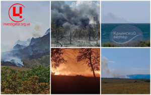 Крим у вогні. Червень-липень 2024 р. Фото:соцмережі. Колаж: investigator.org.ua