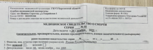 Висновок про смерть Руслана Руснака, підписаний колаборантом Олександром Кайфелем. Фото: Олег Батурін/ЦЖР