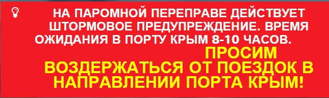 “Во избежание длительного ожидания паромной переправы просим воздержаться от поездок в направлении порта «Крым», – говорится в сообщении ООО “Морская дирекция”.