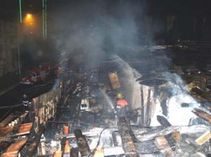 25 сентября, около 21:37, на центр связи Алуштинского ГО ГУ МЧС Украины в АР Крым поступило сообщение о пожаре, возникшем в одном из строений на территории центрального рынка.