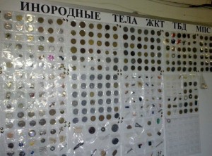 За 20 лет в отделении была собрана большая коллекция инородных тел, в числе которых монеты, иголки, кулоны, значки и многое другое, что проглатывали или вдыхали дети в самом разном возрасте, но в основном группу риска составляют дети от 1 года до 5 лет.