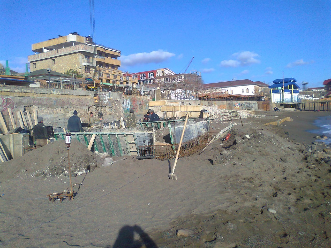 В Судаке на последнем бесплатном городском пляже у самой кромки моря идет стройка. Об этом «Центру» сообщила читательница Л.Иванова.