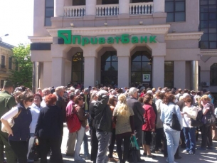 Отметим, что у входа в банк образовалось две очереди: в одной очереди люди стоят, чтобы записаться в общие списки, в другой очереди – те кто уже записались и ждут, когда им вернут их вклады.