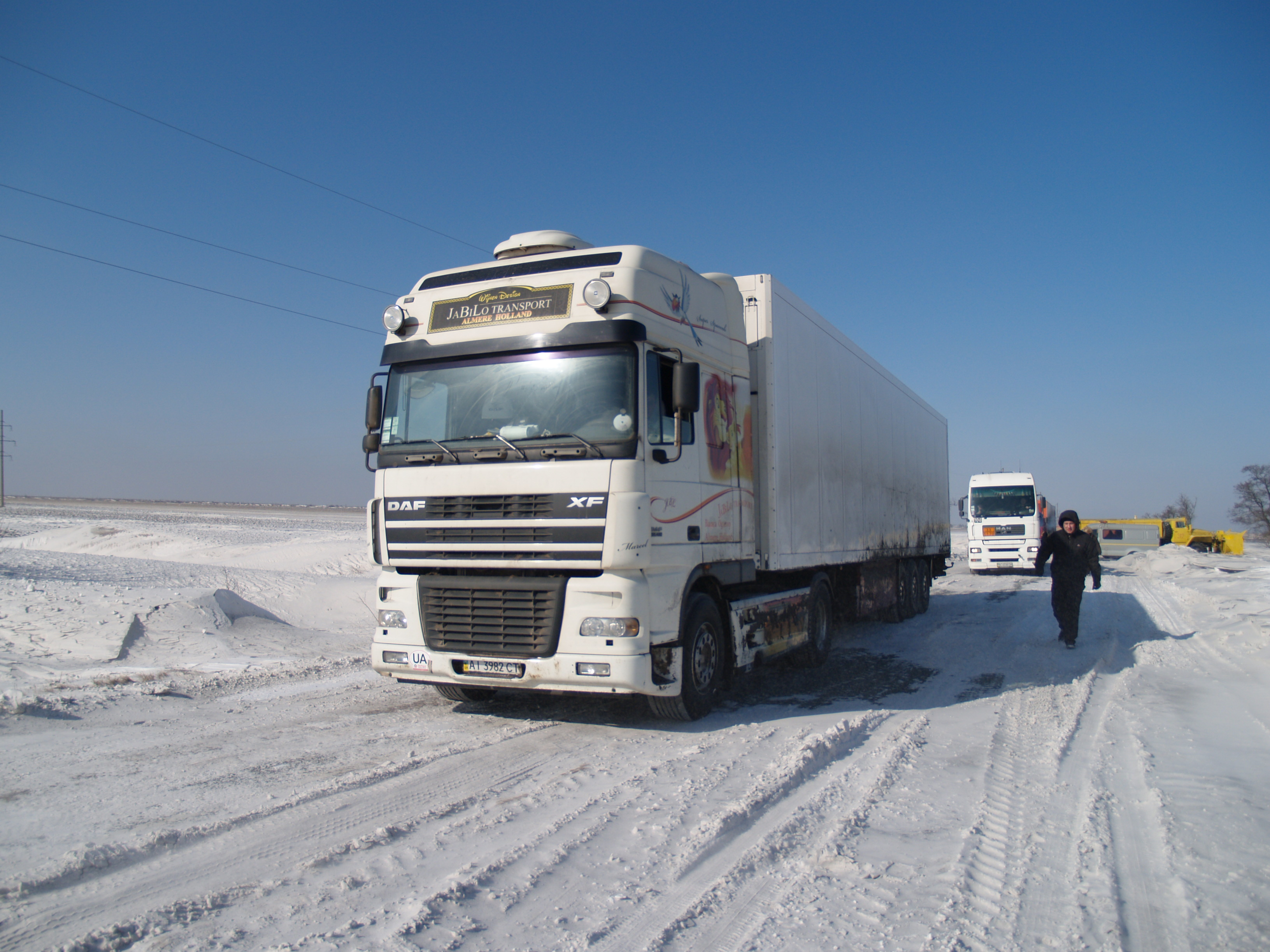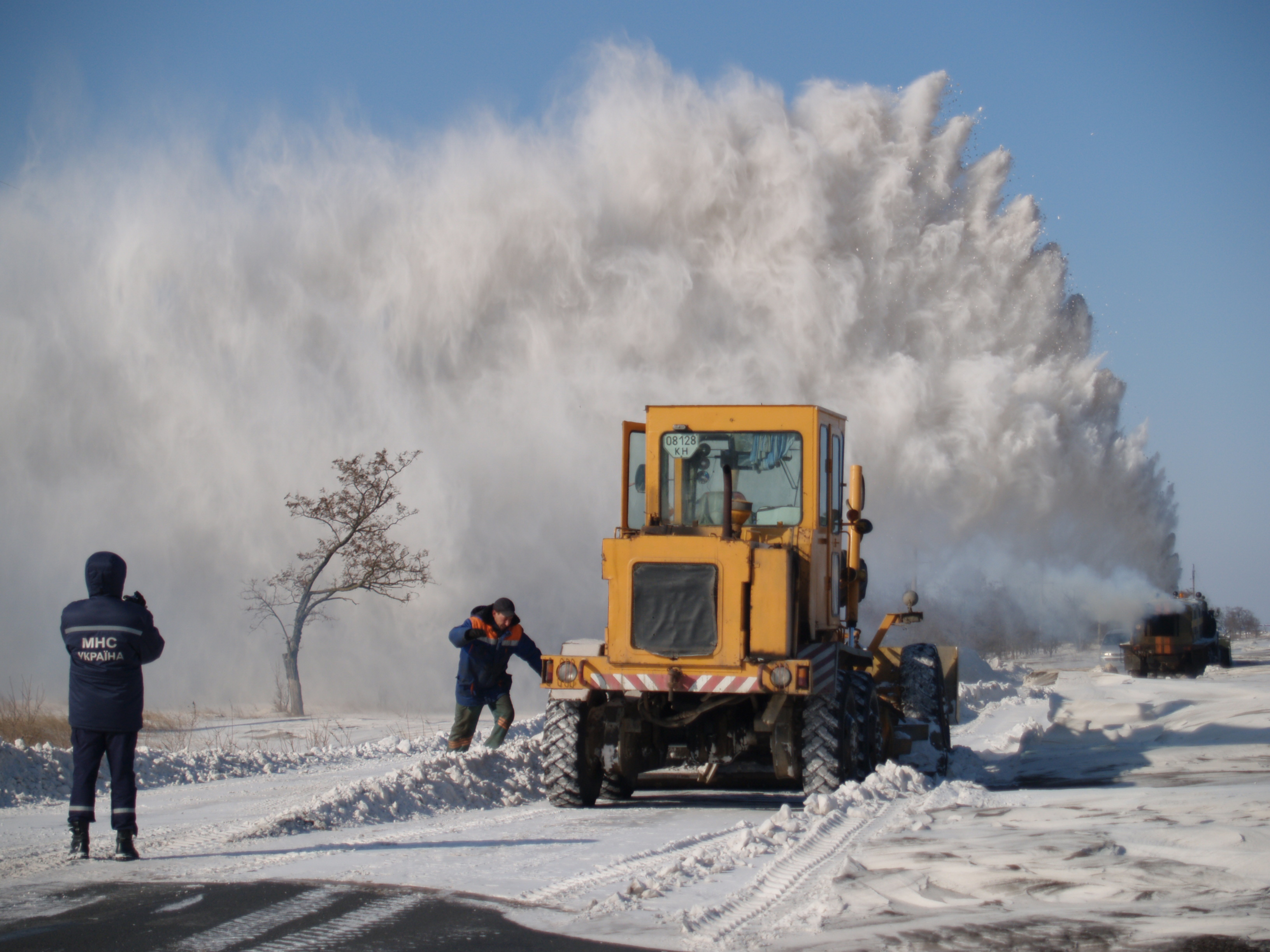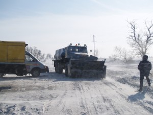 Для обеспечения топливом автомобилей, находящихся в снежных заносах, по трассе «Армянск – Симферополь», работает топливозаправщик (УРАЛ-4320).