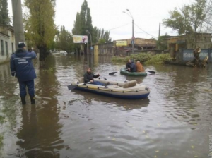 В Одессе местные жители после шторма вынуждены передвигаться по затопленному району Пересыпь на резиновых лодках.