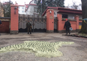 В Львове во вторник возле Генерального консульства России состоялась общественно-художественная акция, посвященная 1000 дням оккупации Крыма. Активисты соорудили песочницу в виде крымского полуострова...