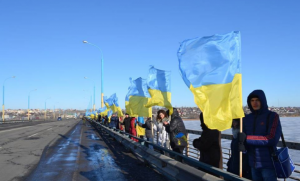 Херсонцы создали «живую» цепь между Левобережной и Правобережной Украиной