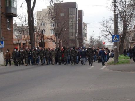 Митингующих в Мариуполе охраняют люди в камуфляже