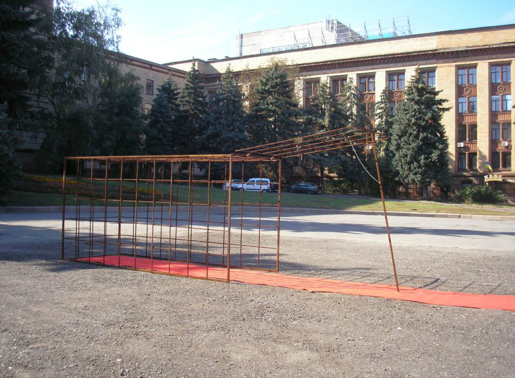 Организаторы акции – молодые люди из объединения “Культура медиальная”, учредители ряда художественных проектов в Днепропетровске. Инсталляция “красная дорожка” была представлена в субботу, 4 октября, в рамках фестиваля аудиовизуального искусства “Конструкция”.