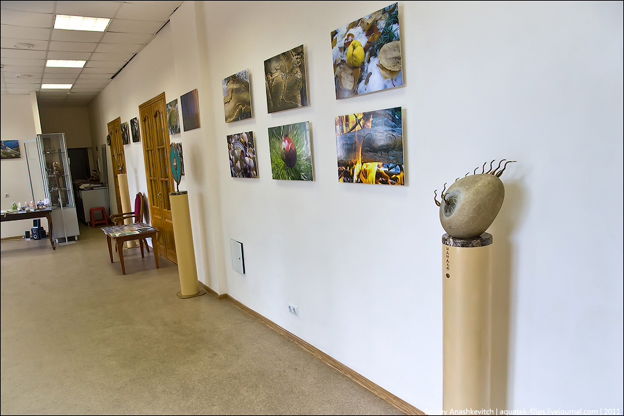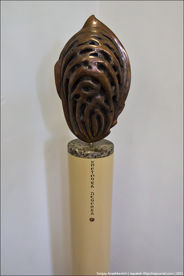 Экспозиция состоит из скульптур семян и косточек различных растений: виноградной косточки, семени клена, гречихи, каштана, семени водяного ореха, и др.