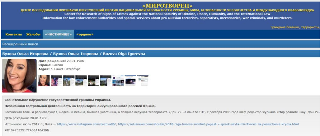 Российскую телеведущую включили в базу «Миротворца» за гастроли в Крыму