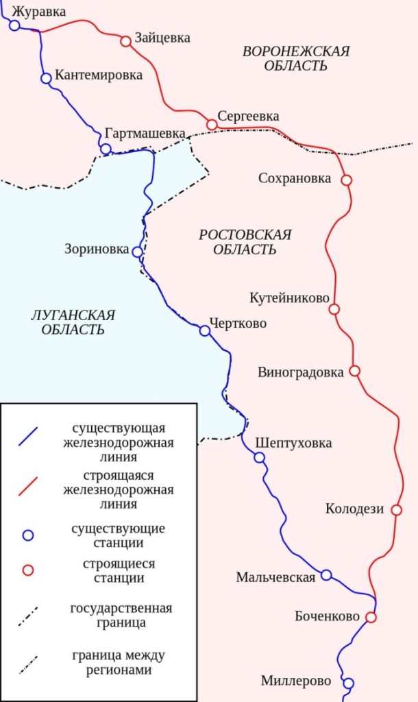 21 вересня 2015 року прем’єр-міністр Росії Дмитро Медведєв підписав розпорядження про будівництво залізниці в обхід Луганській області України на ділянці Журавка (Воронежская область) – Міллерово (Ростовська область).