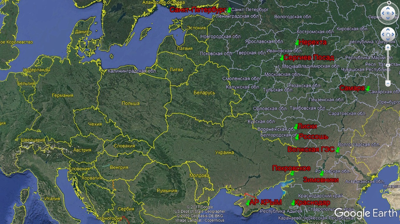 Пересування техніки на відео і фото зафіксували в різних регіонах: Санкт-Петербург, Воронеж, Ростовська область, Краснодарський край, Самара, Волгоградська область, окупований Крим, Костромська область. Локації, де була помічена техніка, позначені на карті.