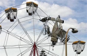 Легкомоторный самолет Cheetah C-200 врезался в колесо обозрения на ярмарке в австралийском городе Тари. В момент происшествия на аттракционе катались двое детей: 9-летний мальчик и 13-летняя девочка. Детям, а также пилоту и пассажиру самолета пришлось ждать помощи больше часа. Никто не пострадал.