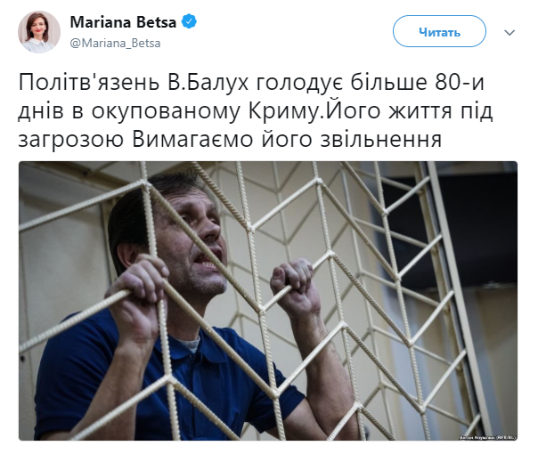 Голодування Балуха триває 82 дні: його життя під загрозою