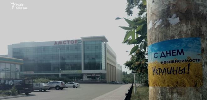У тимчасово непідконтрольному Україні Донецьку невідомі розклеїли жовто-блакитні листівки з поздоровленнями до Дня Незалежності.