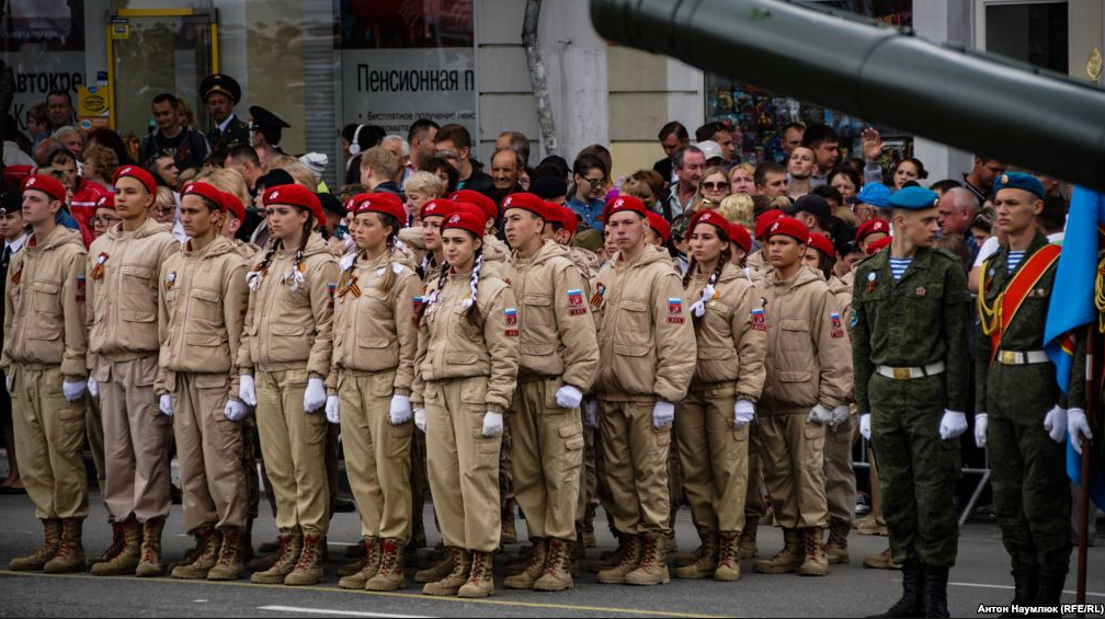 В окупованому Криму 9 травня у параді з нагоди святкування «Дня Перемоги» (закінчення Другої світової війни) візьмуть участь близько п’яти тисяч російських військовослужбовців і понад 100 одиниць техніки. Крім військовослужбовців Чорноморського флоту РФ, особового складу морської авіації і ППО, винищувального авіаційного і зенітно-ракетного полків ВПС, а також Росгвардіі, в параді візьмуть участь школярі з російського руху «Юнармія».