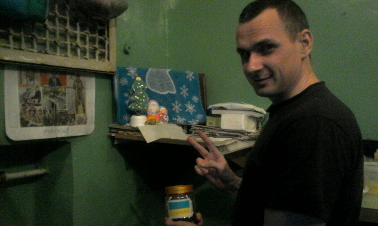 Звільнений з російської в’язниці колишній український політв’язень, кримчанин Олег Сенцов показав свою єдину фотографію в камері колонії РФ. На ній режисер тримає в руці банку з синьою і жовтою смугами, яку він возив усі 5 років перебування в російському ув’язненні, а в Києві передав президенту України разом зі своїм тюремним нагрудним знаком.