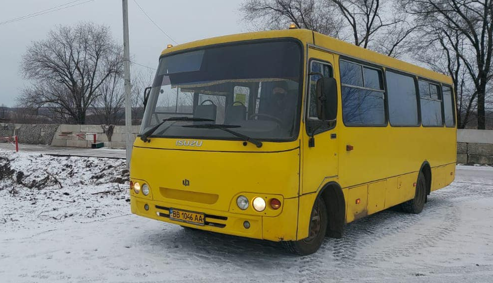 Наданий українською стороною автобус-човник в КПВВ «Щастя» Фото: facebook.com/UkrdelegationTCG