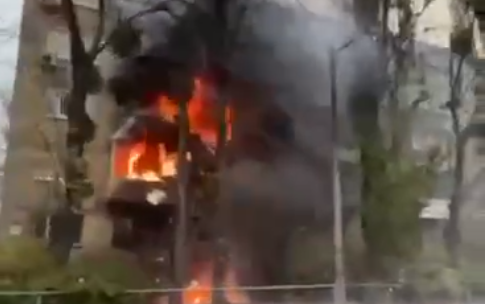 Відео палаючого п’ятиповерхового будинку, в який потрапила ракета, опублікував заступник керівника Офісу президента Кирило Тимошенко.