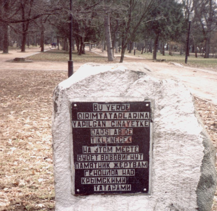Камінь у сквері біля сімферопольського залізничного вокзалу було встановлено понад 20 років тому. Напис на ньому говорив: «На цьому місці буде споруджено пам’ятник жертвам геноциду над кримськими татарами». Пам’ятник так і не звели.