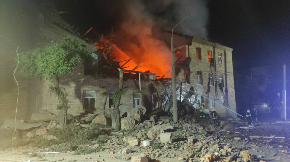 За його словами, близько опівночі ворог завдав по Харкову ударів дронами типу Shahed. Зафіксоване влучання у триповерхову будівлю навчального закладу в Салтівському районі. Зруйновано два поверхи, сталася пожежа. Без постраждалих.