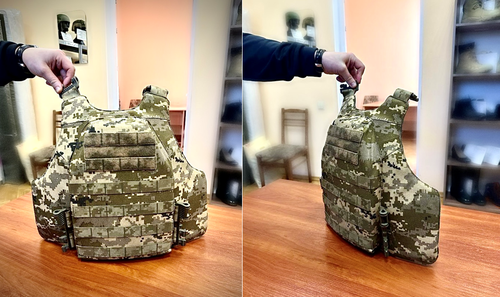 На відео на бічних сторонах бронежилету добре видно демпферні вставки – елементи, яких немає у «чоловічих» моделях «броні». Саме вони забезпечують щільне прилягання до тіла військовослужбовиць та виконують функцію захисту.