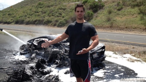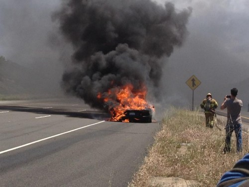 Автомобиль принадлежал местному дилеру. Парню за рулем, которого считают “интернет-миллионером”, очень повезло, что он не успел приобрести спорткар. Водитель успел не только выскочить из автомобиля, но и аккуратно припарковать его на обочине – вне шоссе, но и не вплотную к траве, что могло бы спровоцировать масштабное возгорание сухой растительности. К приезду пожарников автомобиль был полностью охвачен пламенем и как видно на фото, он сгорел практически дотла.
