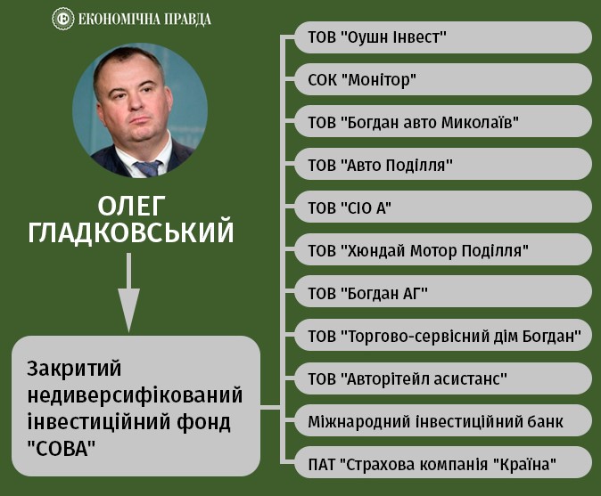 Як наголошується, Гладковський має закритий недиверсифікований інвестиційний фонд «Сова», який управляє його бізнесом.