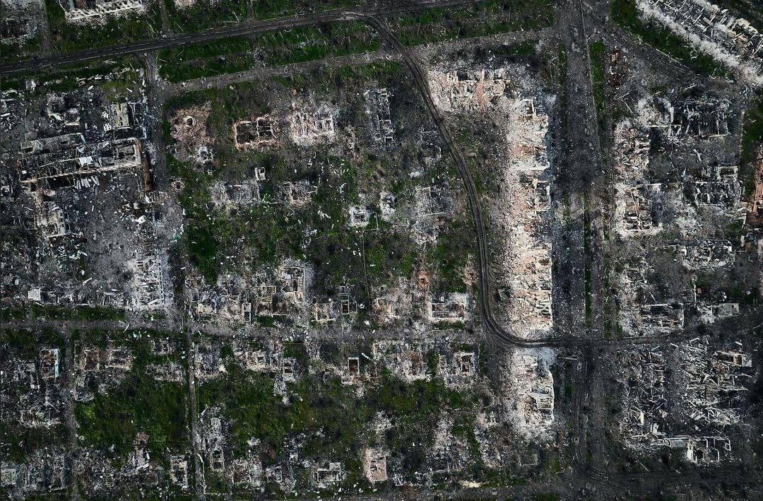 Зняті БПЛА руїни міста Мар’їнка на Донеччині. Фото: Kostiantyn Liberov & Vlada Liberova
