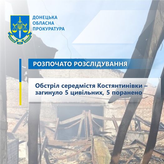 У суботу 24 серпня російські війська обстріляли середмістя Костянтинівки Донецької області, в результаті чого загинуло 5 цивільних, та щонайменше ще 5 мирних мешканців поранено.