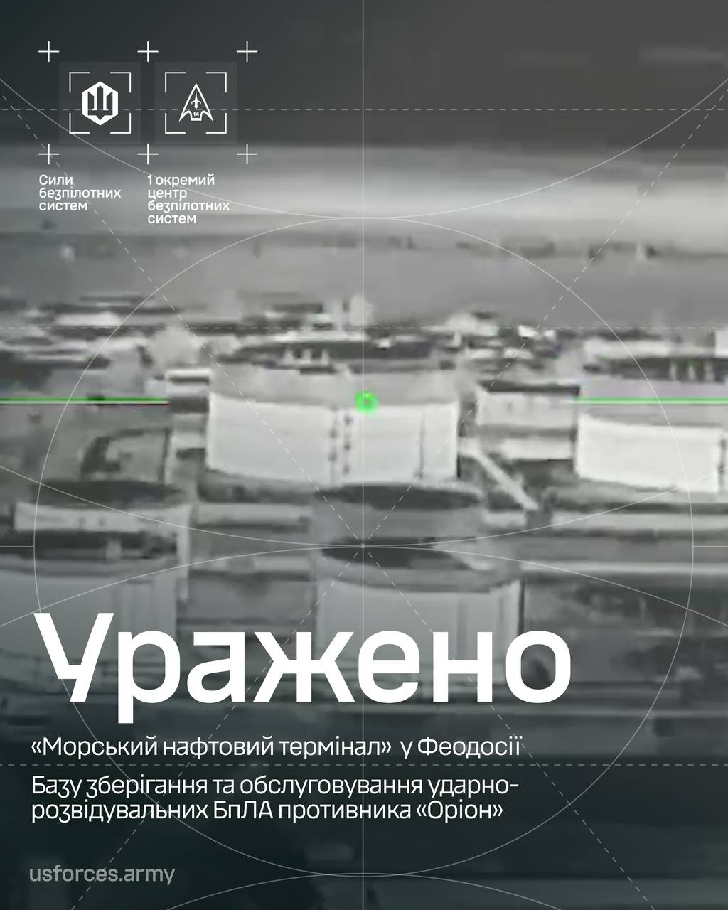 Сил безпілотних систем завдали удару по Феодосійському морському нафтовому терміналу та базі зберігання БпЛА «Оріон»