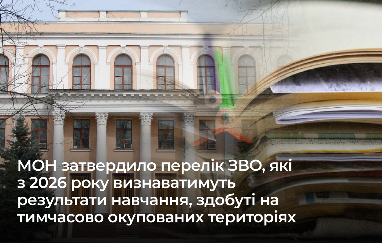 МОН затвердило перелік українських закладів вищої освіти, які з 2026 року визнаватимуть результати навчання, здобуті на тимчасово окупованих територіях України. Це дозволить студентам, які вимушено навчалися на ТОТ, інтегруватися в українську освітню систему.