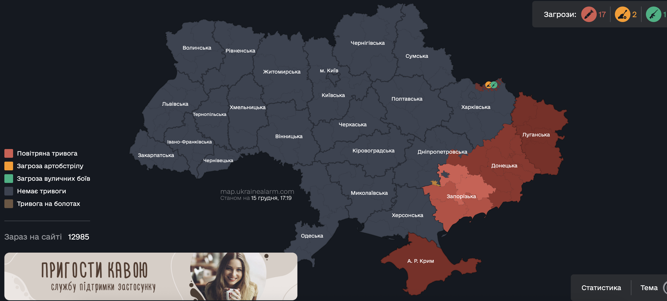 Прем’єр-міністр Юлія Свириденко повідомила, що Державна служба з надзвичайних ситуацій разом із Повітряними силами та ОВА запустили порайонне оповіщення повітряних тривог по всій країні, окрім Донецької та Луганської областей.