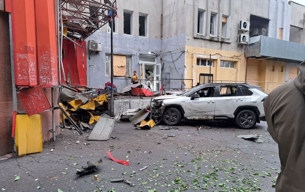 Він також опублікував фотографії місця удару дрона і розбитого авто.