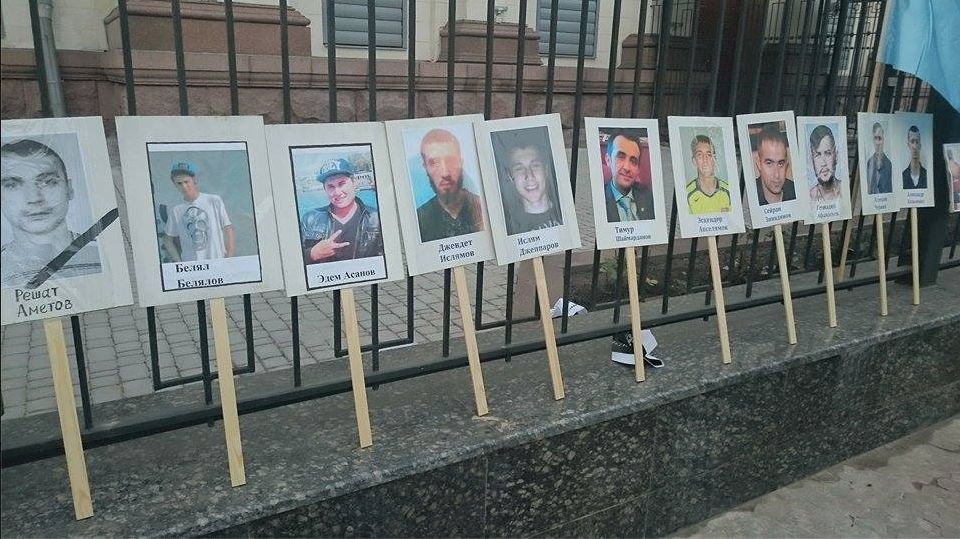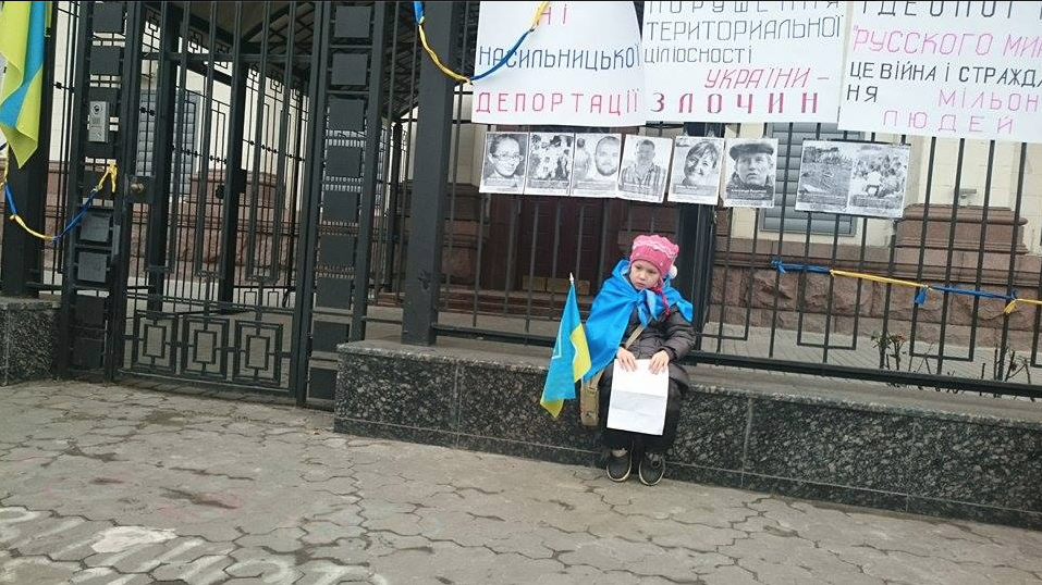 Как сообщает корреспондент “Центра журналистских расследований“, возле дипломатического представительства собрались около 40 человек, среди которых вынужденные переселенцы, гражданские активисты и журналисты из оккупированного Крыма, Донецкой и Луганской областей.