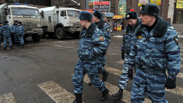 Усиленные наряды полиции и внутренних войск МВД РФ стянуты в центр Москвы для обеспечения общественного порядка во время массовых акций, запланированных на вечер воскресенья, передают РИА Новости.