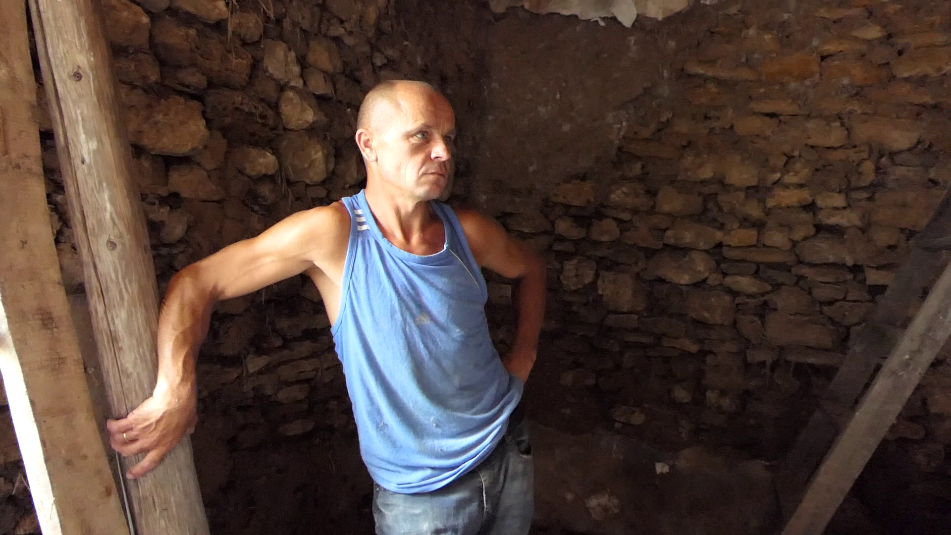 Віталій у своєму напівзруйнованому водою будинку