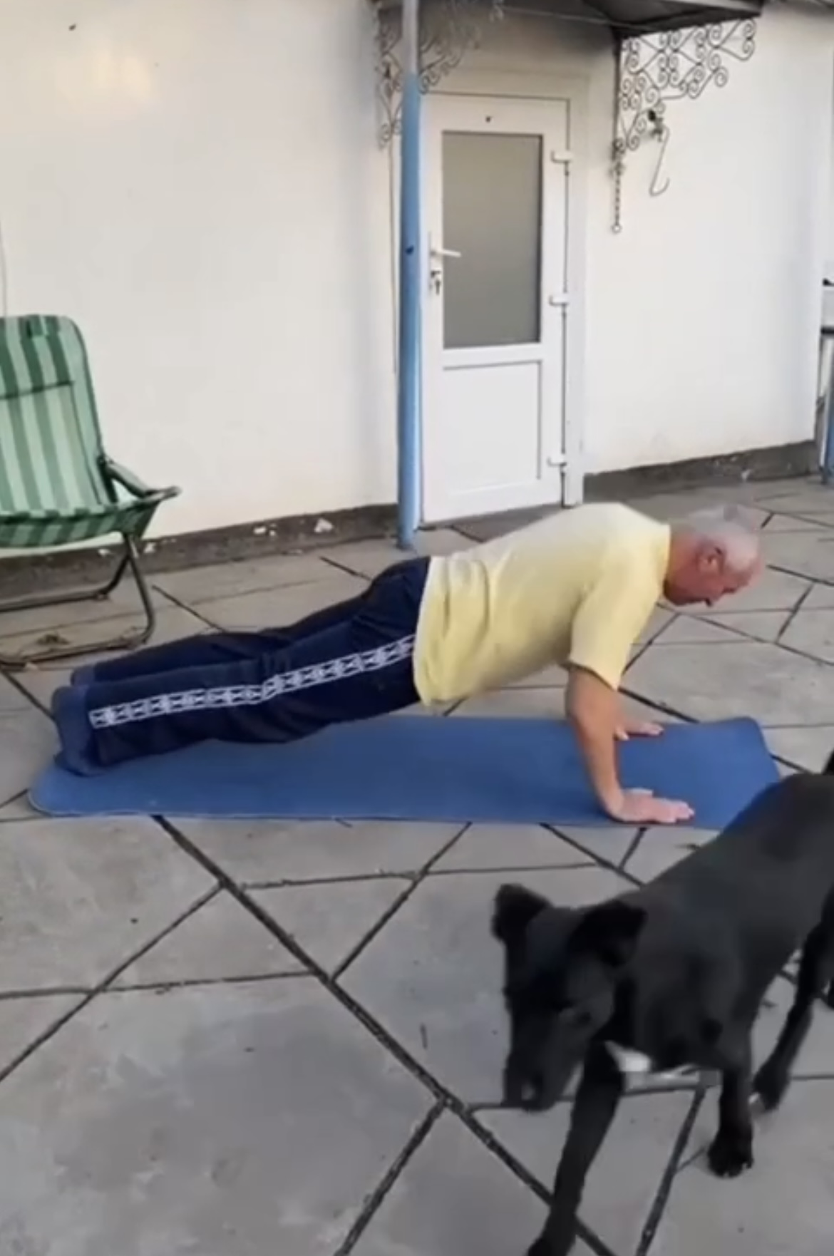 Ігор Філіпчук, батько гауляйтера Каховки Павла Філіпчука, колаборант, узяв участь у “флешмобі-естафеті” з пропаганди здорового способу життя. Скріншот відео
