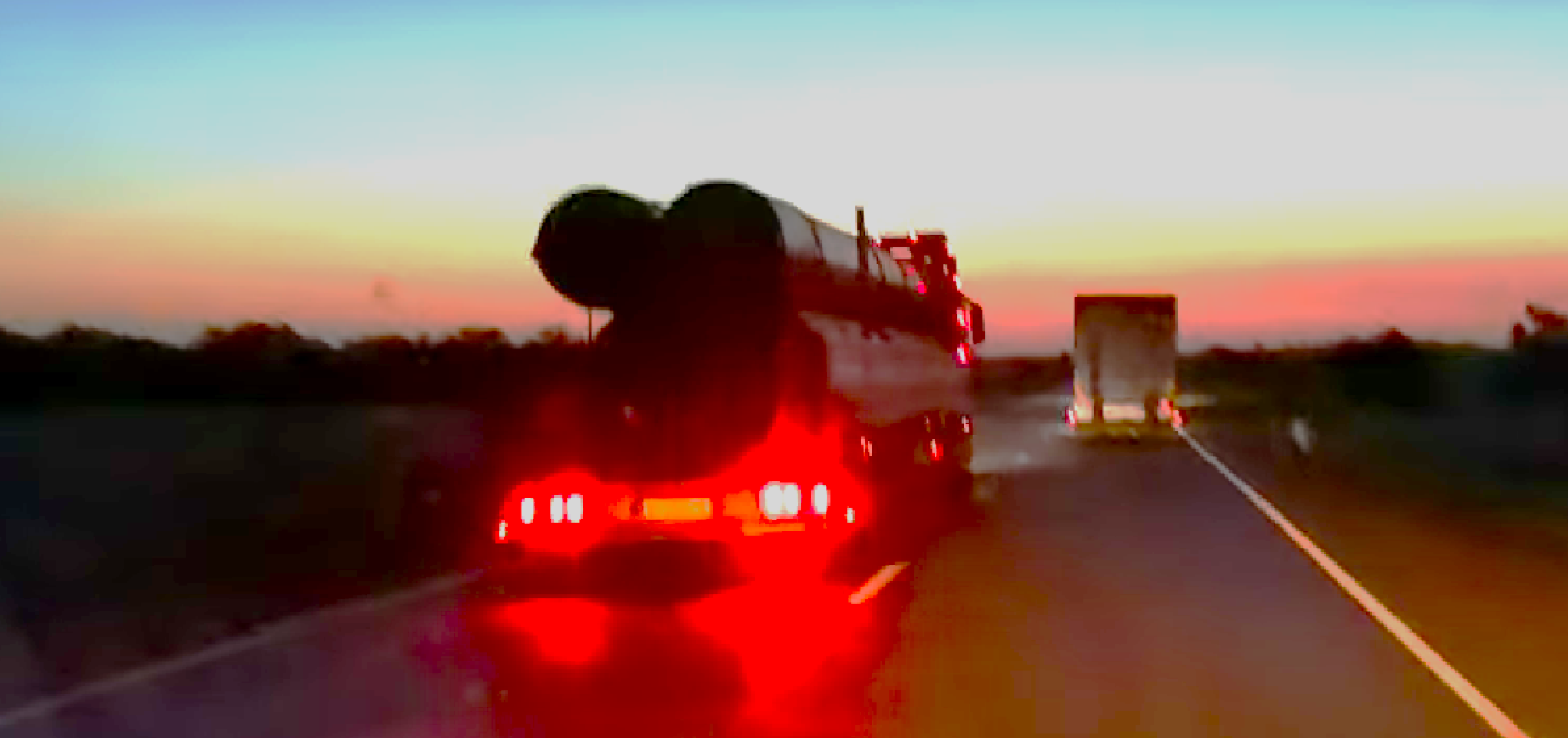 Вантажівка з трубами рухається вночі по сухопутному коридору Росії. Фото: соцмережі