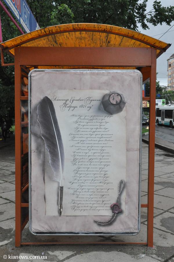 В Симферополе остановка по ул. Киевской возле Дворца культуры профсоюзов и Книжного рынка приобрела новый вид – на ней размещены стихотворения известных поэтов. Это четвертая арт-остановка, которая реализована в рамках программы «Молодежь Крыма», передает Крымское информационное агентство.